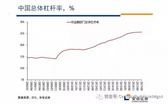 2012年以来,整体快速上升,斜率比较高。杠杆率的上升这个问题总体上集中在中国的企业部门。
