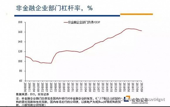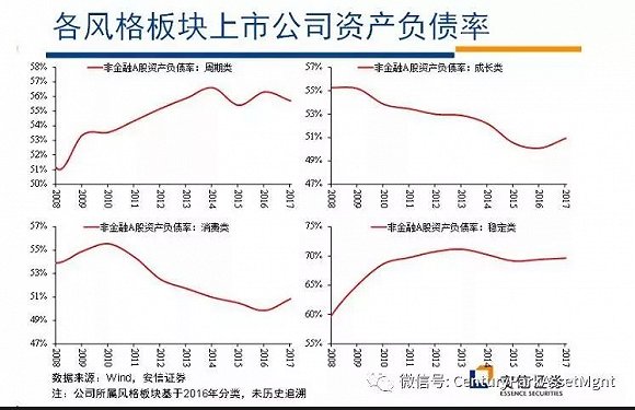 就板块来讲,主要是周期类和稳定类的杠杆率在上升,包括公用事业,交通等等,消费亿成长类总体杠杆率一直在下降。所以中国杠杆率的上升,主要是国有企业,板块主要是周期,运输,建筑等等。